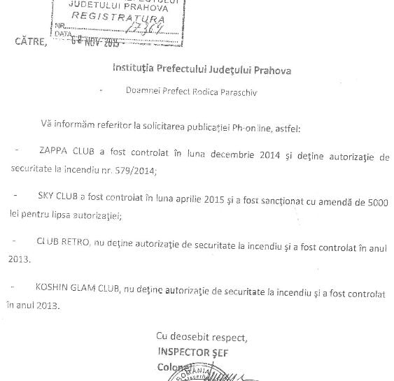 Singurul club care avea autorizaţie de securitate la incendiu a fost Zappa, din incinta mall-ului Afi Palace Ploieşti.