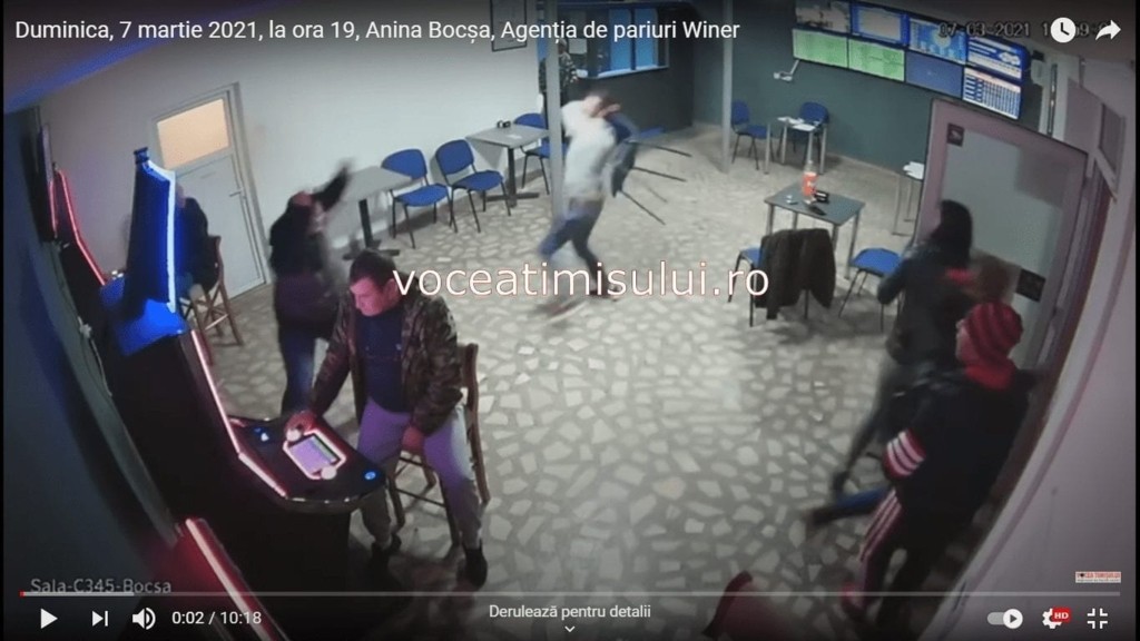 Un scandal iscat intr-o sala de jocuri din Anina, Caras-Severin, a fost surprins de camerele de luat vederi din incinta.