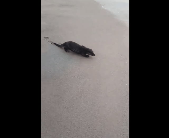 La primele ore ale dimineții, o vidră și-a făcut apariția pe plajă.