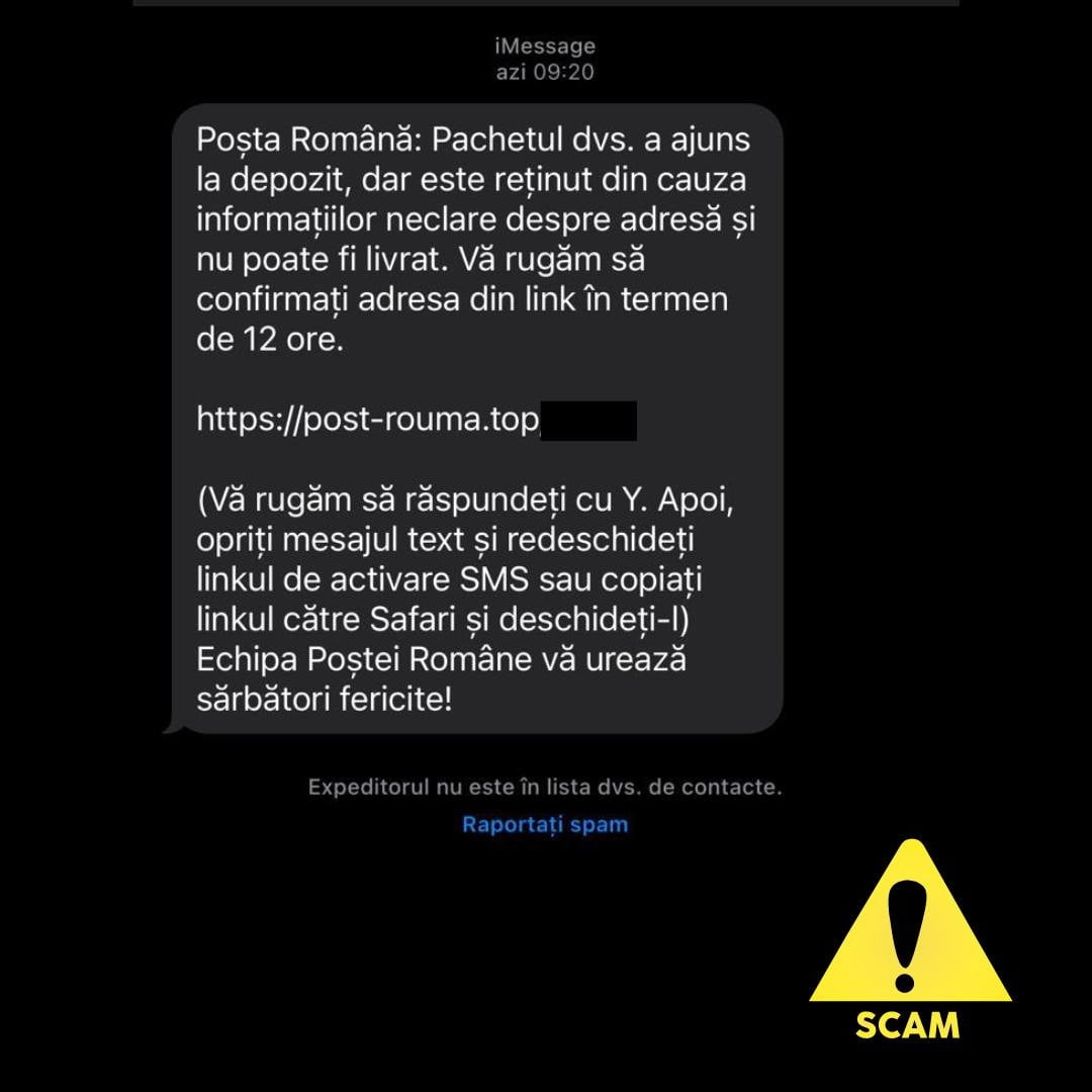 Astăzi, vrem să vă aducem în atenție câteva exemple recente raportate de către utilizatori, în care atacatorii trimit sms-uri în care pretind a fi Poșta Română