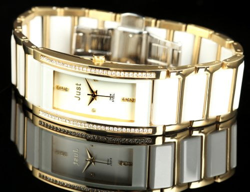 Ceas Just Watches 48-S2325WH-BR – este un ceas unisex rezistent la apă. Dispune de un mecanism quartz Miyota 2035 şi display analog. Carcasa este dreptunghiulară din oţel inoxidabil. Brăţara este lată, din piele şi de culoare maro, iar preţul este de 99,90 lei.