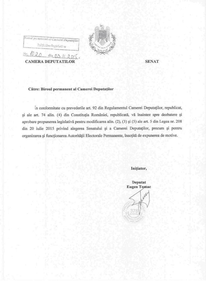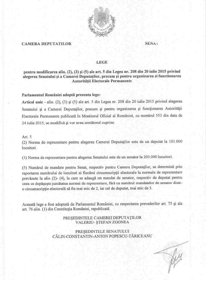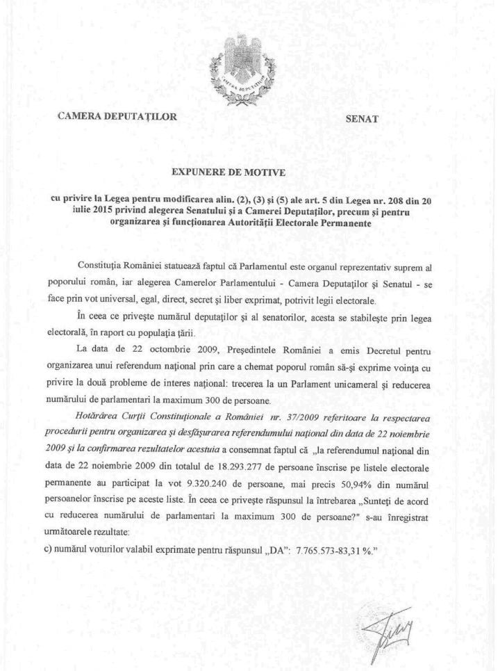 Parlamentarii Miscarii Populare au depus la Parlament initiativa legislativa privind reducerea numarului de parlamentari la 300.