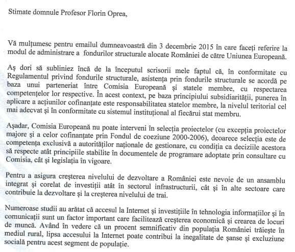 Citește mai jos răspunsul integral al comisarului european transmis profesorului Oprea:
