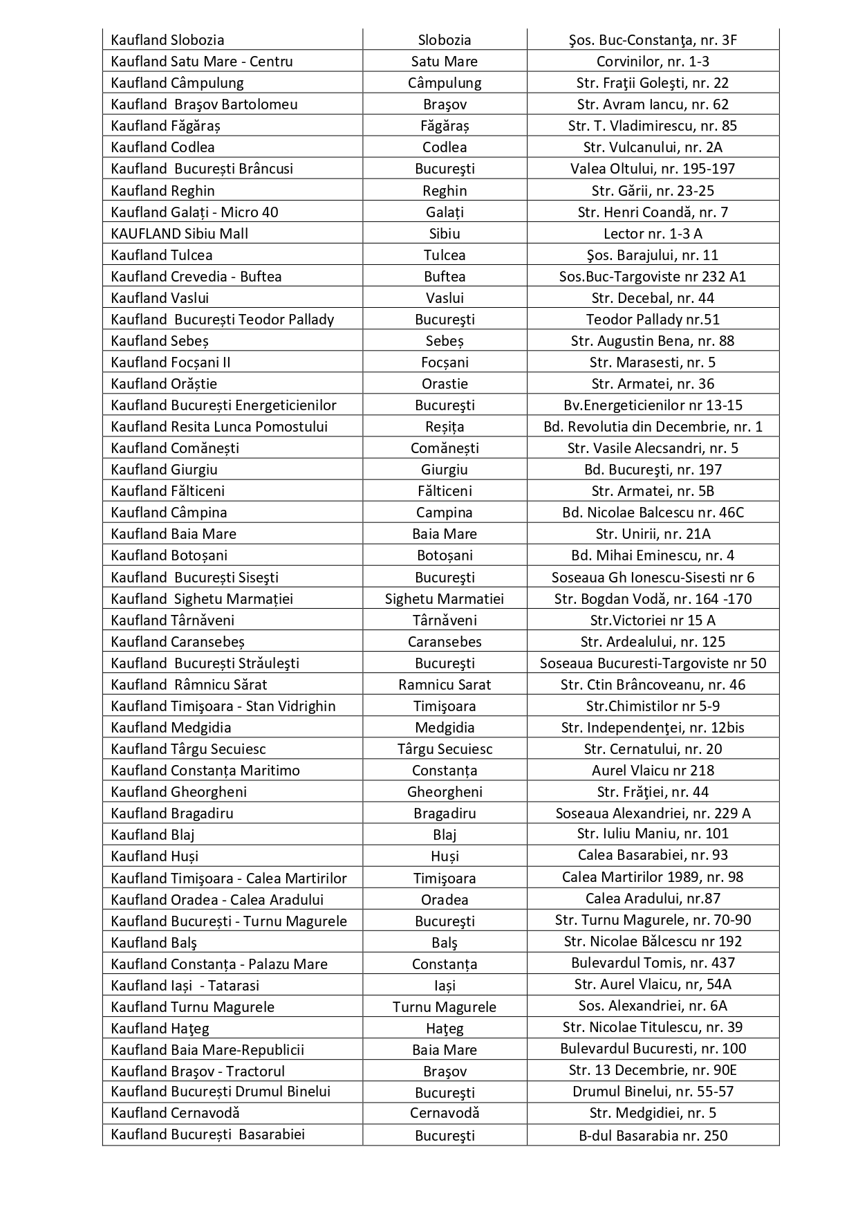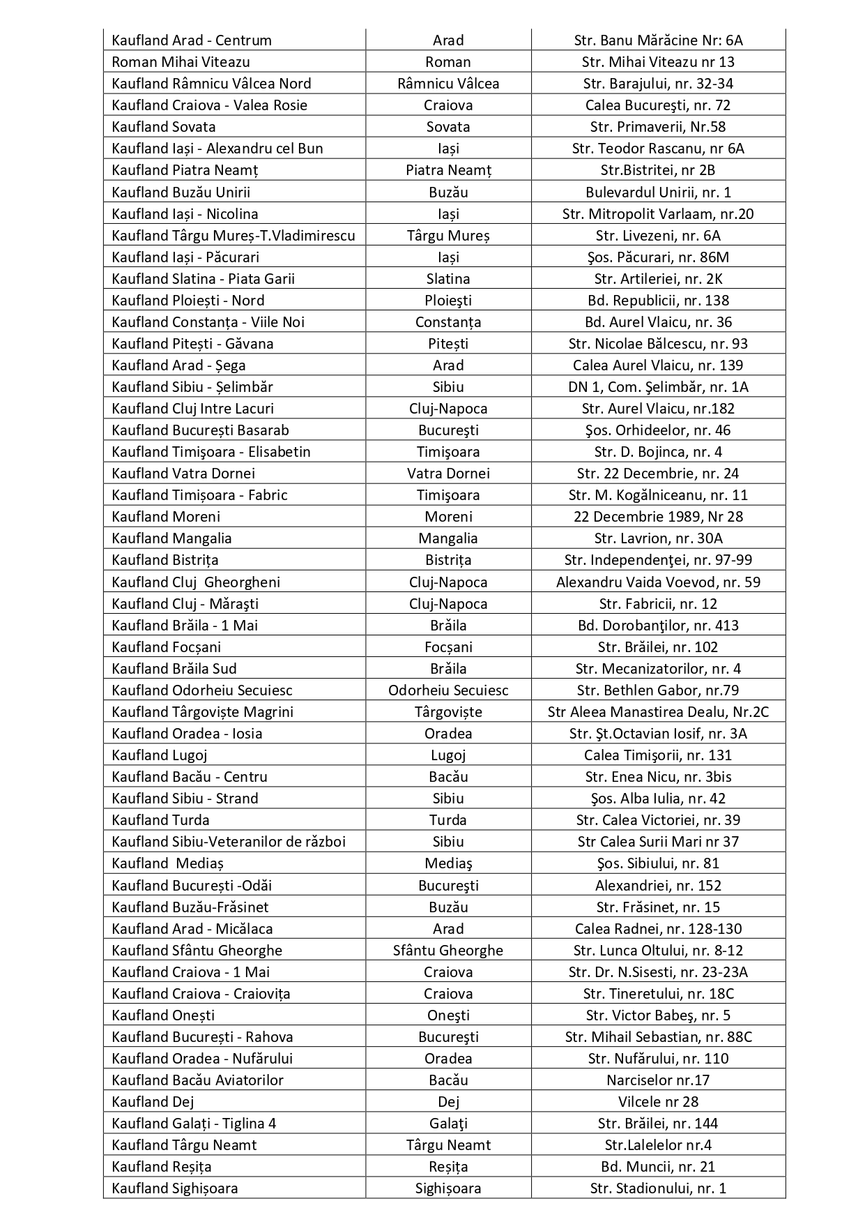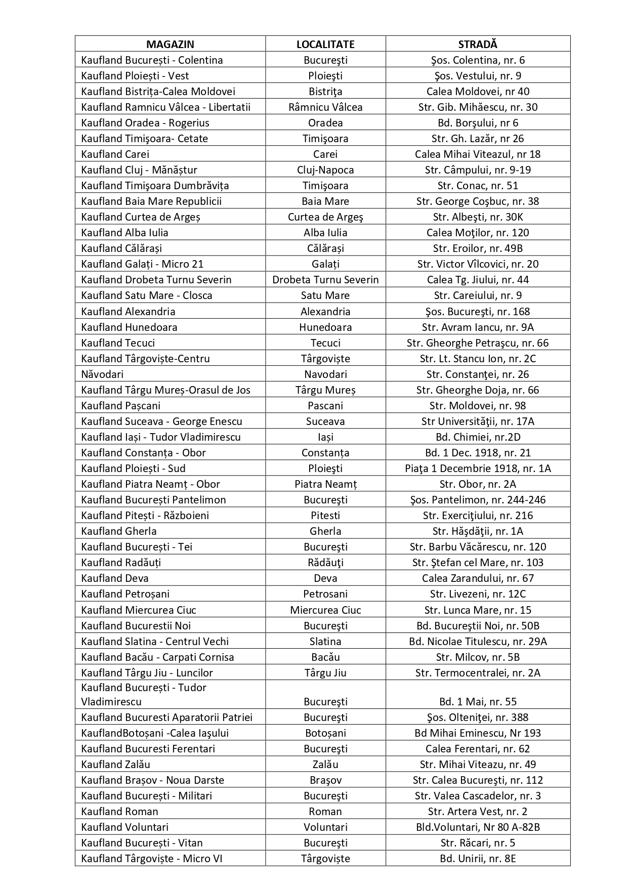 Lista magazinelor care au comercializat produsul: