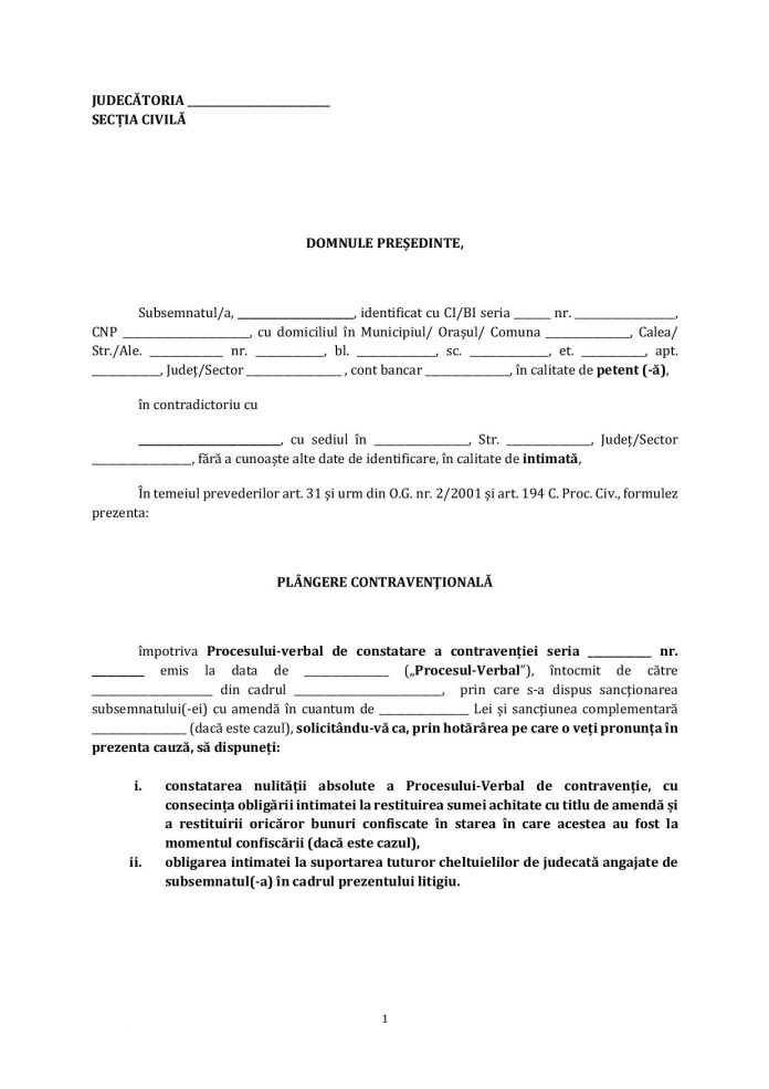 Astfel, pentru a scăpa de plata amenzilor din starea de urgență este nevoie de o cerere depusă la judecătoria localității pe raza căreia s-a completat procesul verbal