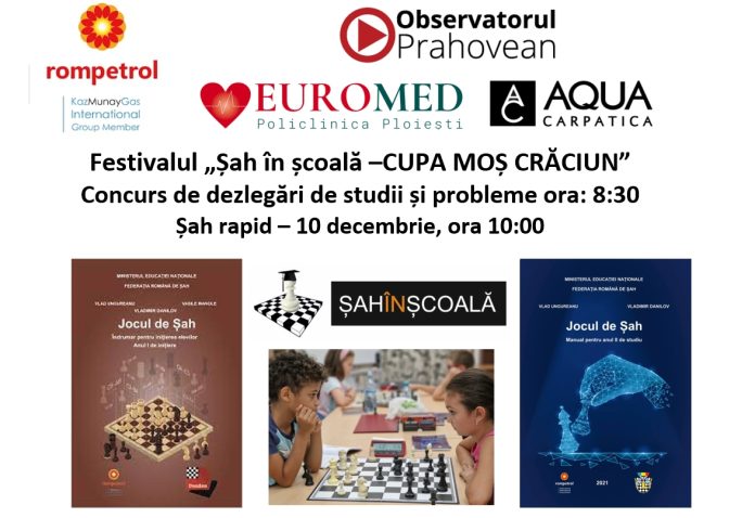 Direcția Județeană Pentru Sport împreună cu Asociația Județeană de Șah Prahova, Clubul Sportiv Universitar Ploiești și CS Gambitul Damei Iași, organizează în data de 10 decembrie, Festivalul „Șah în școală – Cupa MOȘ CRĂCIUN”, șah rapid.