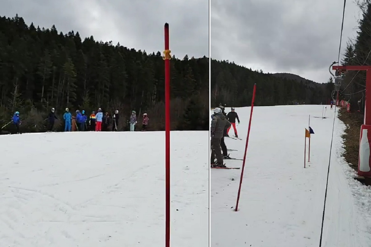 Momentan, singura pârtie funcțională de la Azuga este cea de începători, însă acest lucru nu a știrbit din bucuria celor sosiți la munte, care nu au ratat ocazia de a se fotografia pe schiuri.