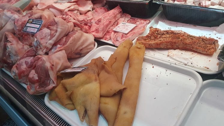 Prețul la carnea de porc variază însă de la un magazin la altul. La un stand de la Halele Centrale, ceafa de porc costă 35 lei/kg, mușchiul file era la vânzare cu 28 de lei/kg, pieptul de porc – 26,5 lei/kg, în timp ce antricotul cu os costa 23 lei/kg.