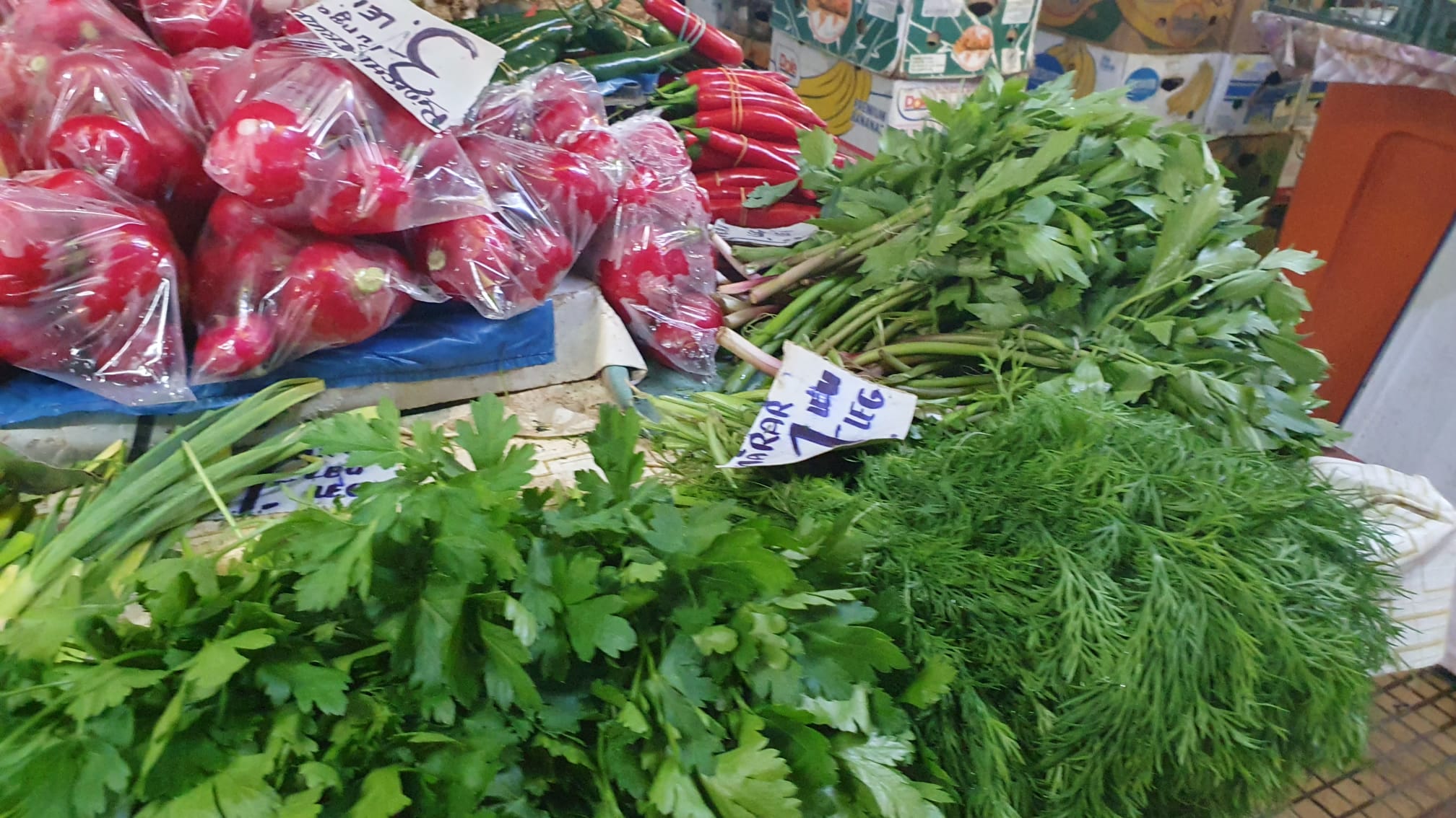 La Halele Centrale din Ploiești tarabele sunt încărcate de verdețuri, de la ceapă și usturoi verde, la salată verde, ridichi, dar și pătrunjel, mărar și leuștean.