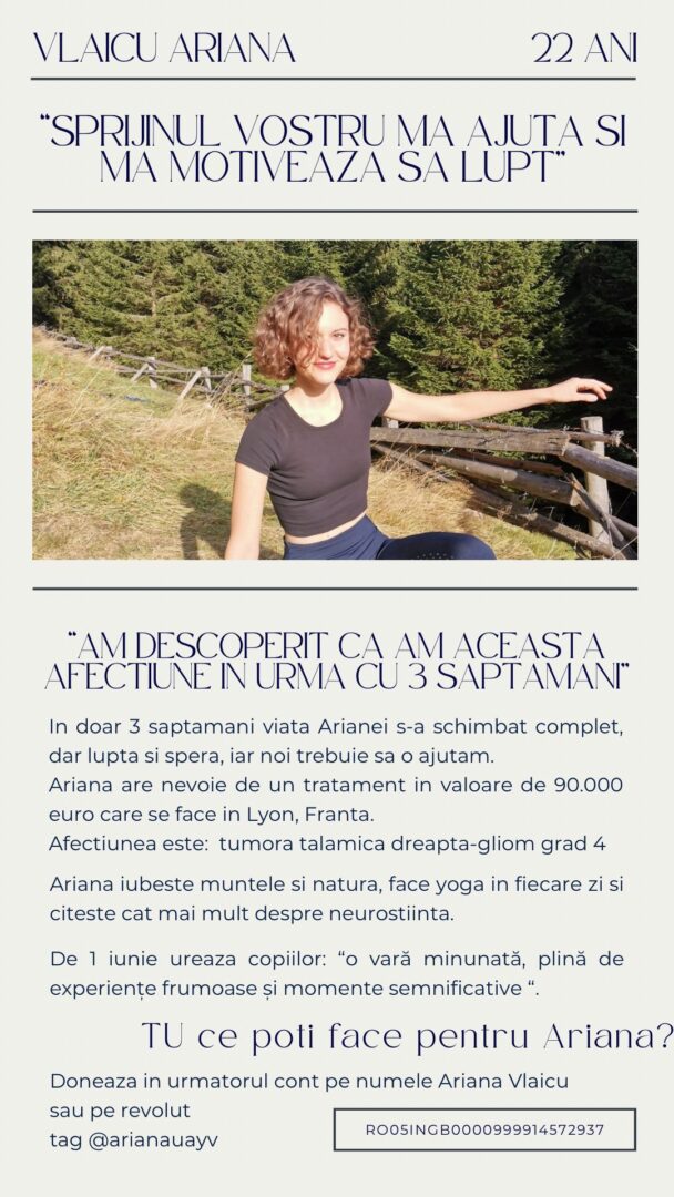 Cei care doresc să o ajute pe Ariana pot dona în conturile: