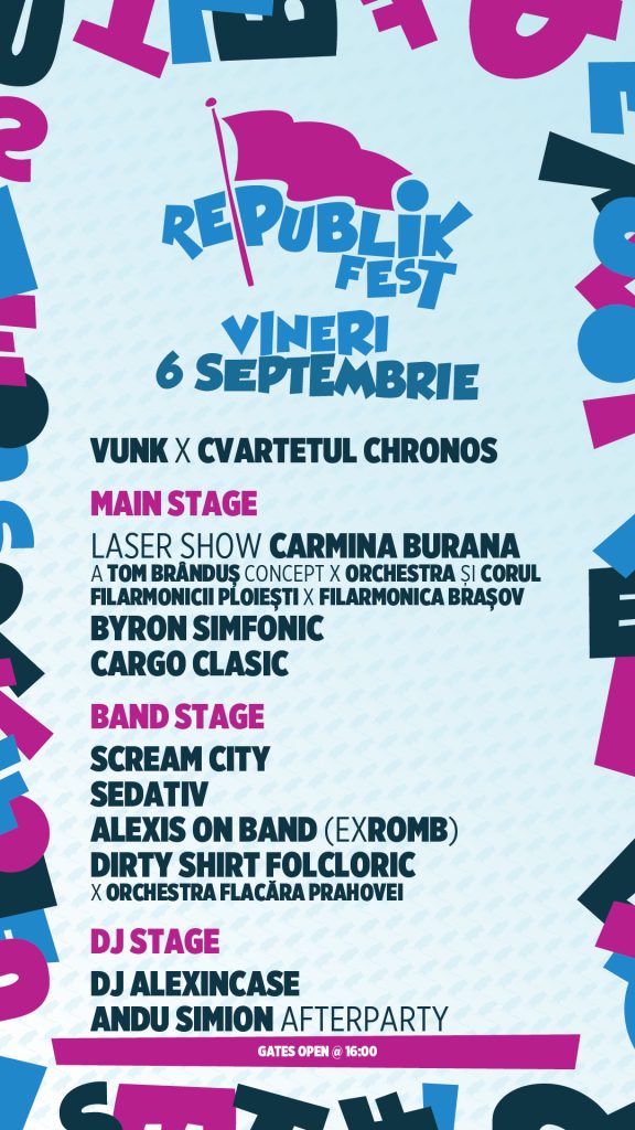 Republik Fest, primul festival fusion-simfonic din România, aduce în Ploiești unele dintre cele mai mari nume ale muzici românești, punând rock-ul, hip-hop-ul și muzica electronică pe aceeași scenă cu cele mai bune orchestre simfonice din țară.