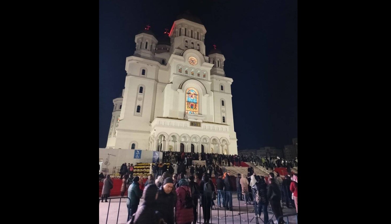 Ieri, în jurul orei 19:00, un grup enoriași din comuna Păulești s-a așezat la coadă pentru a vizita Catedrala Mântuirii Neamului.
