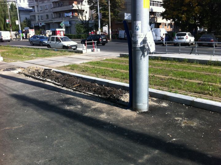 Deși lucrările la linia de tramvai pentru traseul 101 au fost finalizate în mare parte, constructorul nu s-a obosit să redea trotuarul circulației pietonale în condiții normale. Mai exact, după înlocuirea vechilor stâlpi electrici, pe zona destinată pietonilor din Centru până la Sud au răsărit mai multe gropi, deși totul este asfaltat recent.