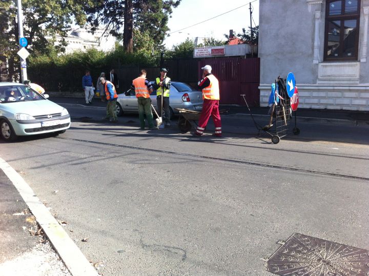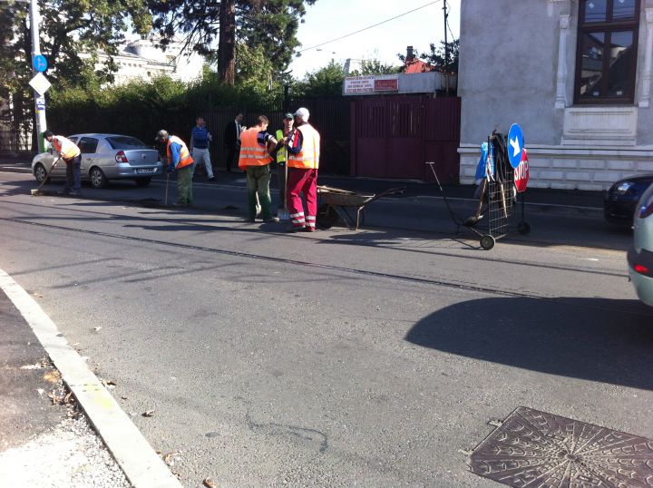 Luni aceștia se aflau pe strada Ștefan Greceanu și executau curățarea căii de rulare. În timpul asfaltărilor, în mai multe zone spațiul dintre șine, a fost umplut cu bitum, iar circulația mijloacelor de transport în aceste condiții este imposibilă.
