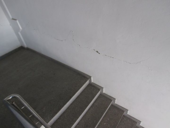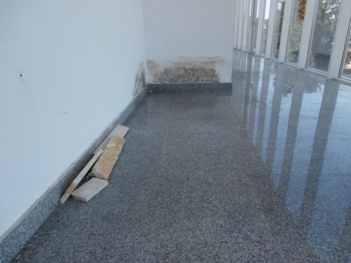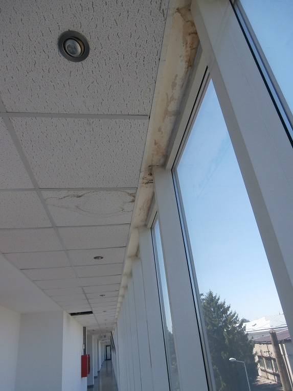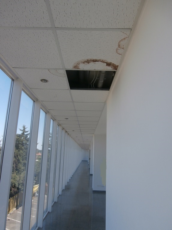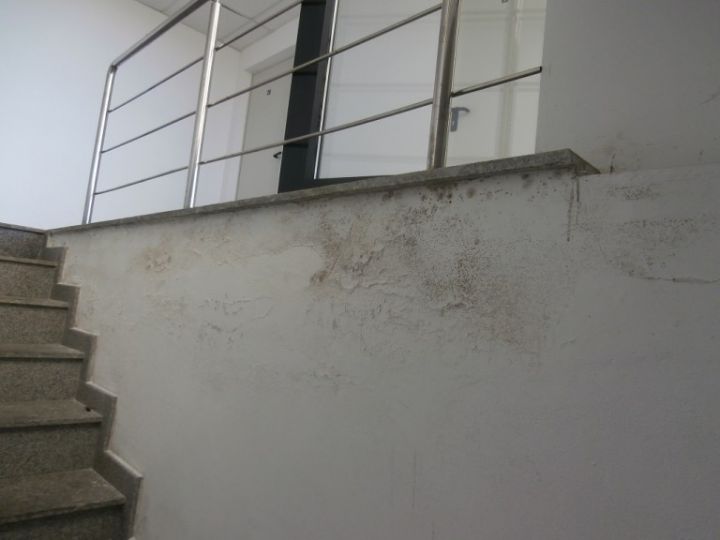 In zona lojelor sunt pereti plini de mucegai si bucati de tavane aparente sunt lipsa sau patate de infiltrari de apa care au lasat zoaie pe pereti si pe geamurile de exterior.