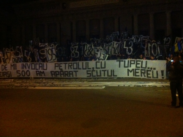 UPDATE: La orele 19.30, mitingul suporterilor s-a terminat, cei aproape 300 de fani ai echipei deplasându-se, în liniște, spre stadionul Ilie Oană, unde are loc meciul Petrolul – Concordia Chiajna.