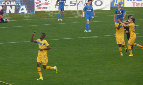 Replica moldovenilor a venit rapid, dar Cobrea s-a opus senzaţional la lovitura de cap a lui Martinus (11), după care Petrolul putea da lovitura prin Moussa (30), cel care, singur în 6-7 metri, şi-a preluat prea lung mingea şi a trimis în braţele lui Pleşca. Pericolul s-a mutat, din nou, la buturile oaspeţilor, atunci când Cucu (31) a trimis, cu capul, spre poartă, dar Tudose a respins salvator de pe linie. Şapte minute mai târziu, insistenţa gazdelor avea să dea roade: Dimitrov a pătruns pe dreapta şi a centrat perfect în “buza” porţii, iar ex-petrolistul Hadnagy a îndeplinit o formalitate, reluând balonul în plasă.