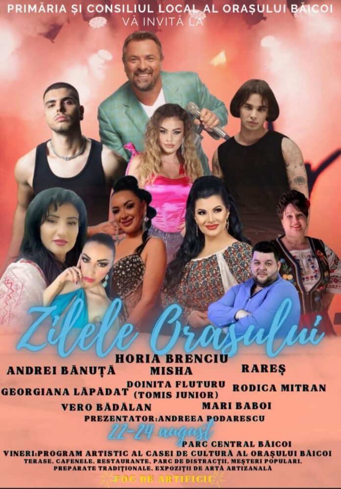 Primăria și Consiliul Local Băicoi organizează Zilele Orașului Băicoi, în weekendul 22-24 august, în parcul central.