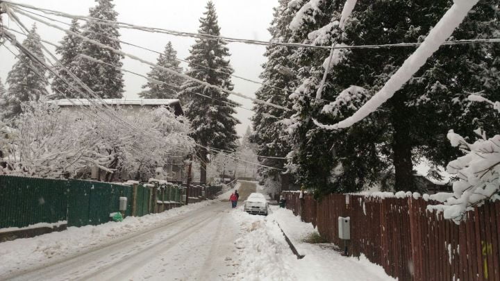 Locuitorii din Bușteni și Azuga s-au trezit în această dimineață într-un decor de iarnă. În ultimele 12 ore, pe Valea Prahovei a nins abundent, stratul de zăpadă măsurând până la 30 cm.
