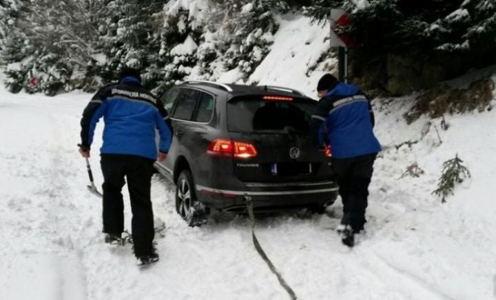 Jandarmii de la Postul Montan Zănoaga au intervenit, ajutând turiştii să deblocheze maşina şi să-şi continue drumul până la Peştera.