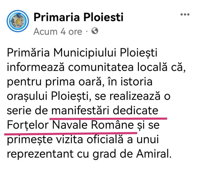 Am văzut postarea care anunță evenimentul pe pagina Primăriei Ploiești. Trebuie precizat că nu instituția în cauză organizează manifestările, dar le găzduiește în acest superb oraș. Pentru conformitate, linkul anunțului poate fi accesat AICI. Ei doar au informat, Neptun fie cu ei!