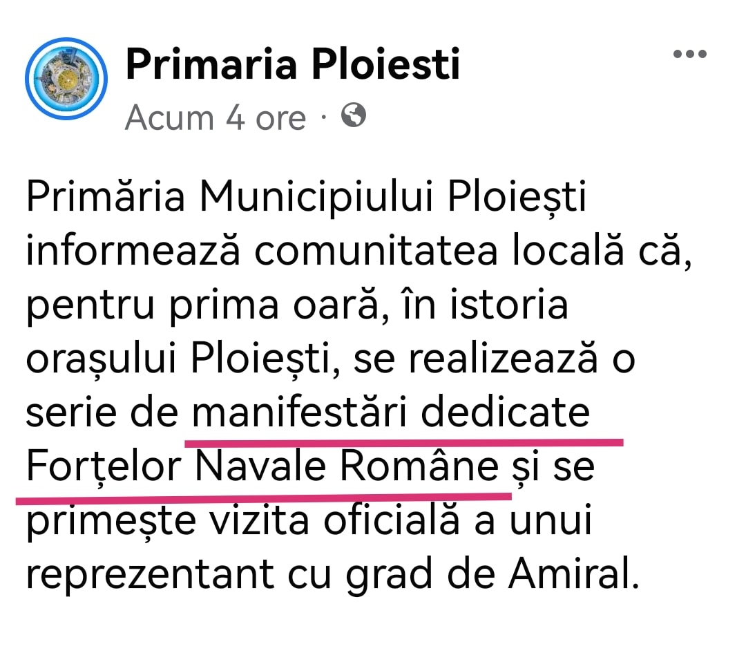 Măcar am înțeles de ce nu a fost furnizată apa caldă în Ploiești, timp de două luni. Suspectez rezonabil că au păstrat-o ca să facă o ”mare mică” din ea, că nu puteai să lași pe uscat manifestările Forțelor Navale.