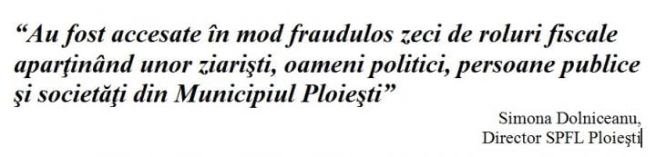 Prin prezenta vă rog respectuos să-mi comunicaţi dacă rolul meu fiscal (fişa mea fiscală)  a fost accesat în mod fraudulos pe durata mandatului dumneavoastră. Dacă da, de câte ori, la ce date (cu menţionarea exactă a datei şi orei), care au fost informaţiile vizate şi care au fost persoanele sau căror angajaţi ai SPFL le aparţin ID-urile de pe care s-au făcut interogările.